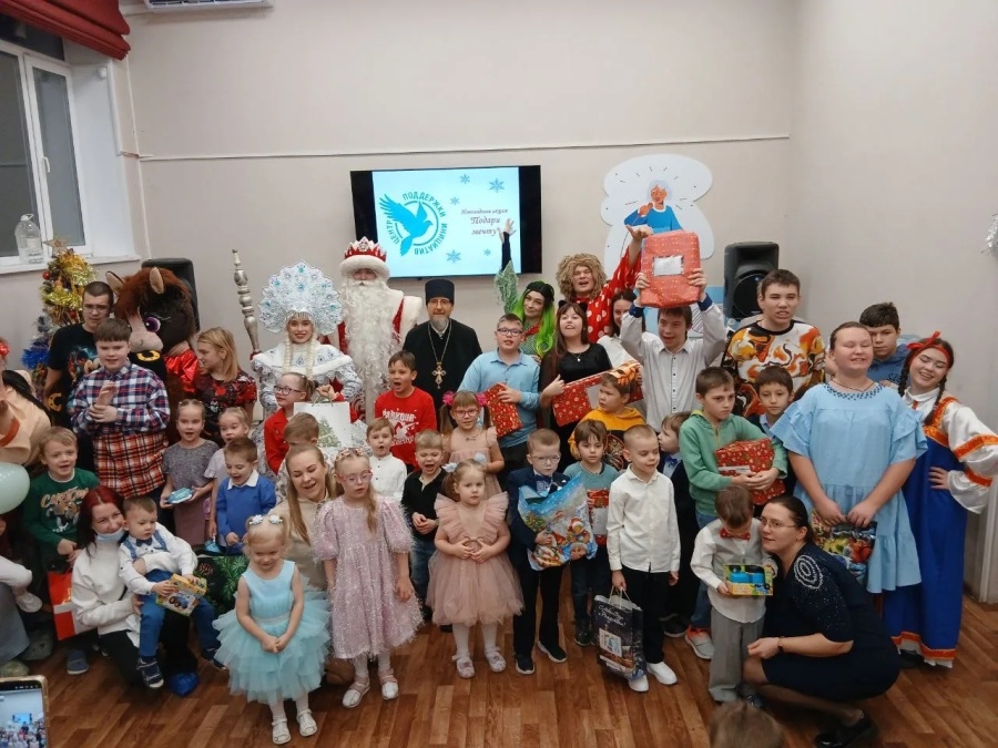 22 декабря настоятель Богородицерождественского храма деревни Саурово архимандрит Серафим (Марухин) с детской студией развлечений «Карамелия» поздравил с наступающим Новолетием и Рождеством Христовым воспитанников Павлово-Посадского отделения Комплексного центра социального обслуживания и реабилитации детей-инвалидов и детей с ограниченными возможностями здоровья филиала Окружного управления социального развития № 4. Детей поздравили Дед Мороз и Снегурочка. Отец Серафим вручил подарки 46 воспитанникам.