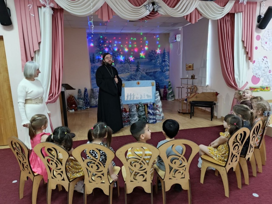 20 января в дошкольном отделении "Ёлочка" МОУ СОШ 14 Павлово-Посадского городского округа состоялся показ Театра теней "Рождественская история". На мероприятии присутствовал клирик храма священник Михаил Дерябин. По окончании представления отец Михаил окропил помещения учреждения святой водой.