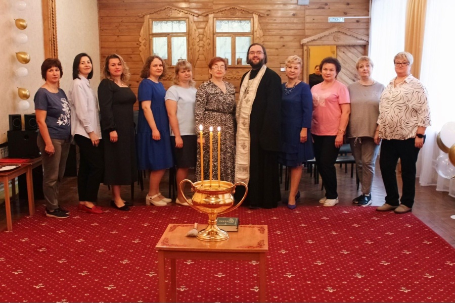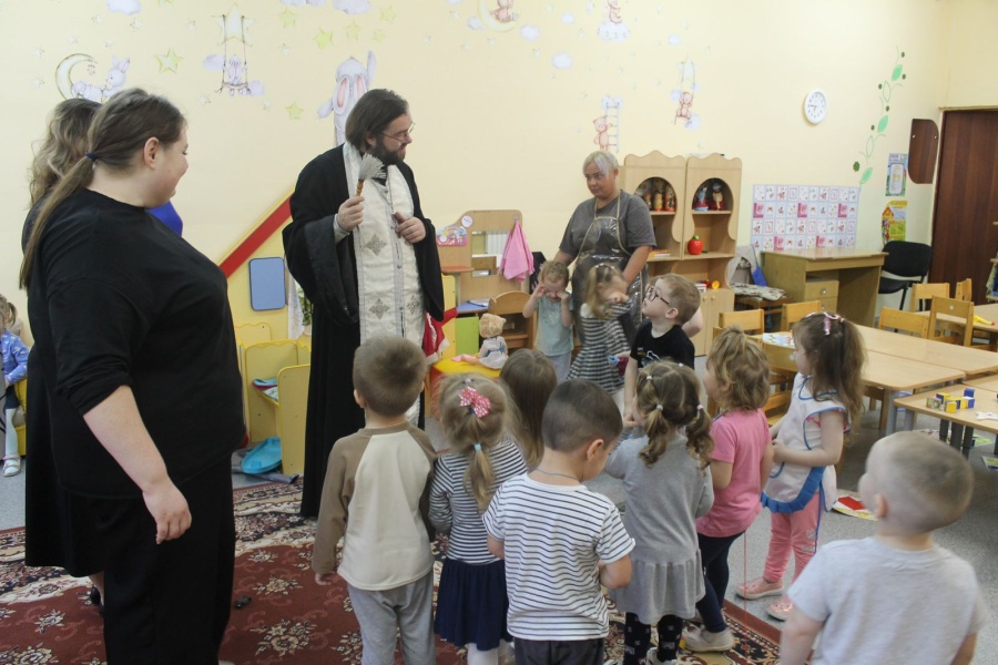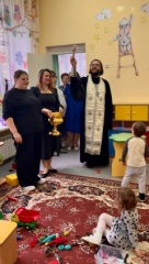 7 ноября клирик храма священник Михаил Дерябин посетил дошкольное отделение "Ладушки" МОУ "Гимназия". Отец Михаил поздравил заместителя директора О.А. Козлову и сотрудников с 50-летием учреждения, передал в дар икону Божией Матери "Иерусалимская" и окропил помещения святой водой.